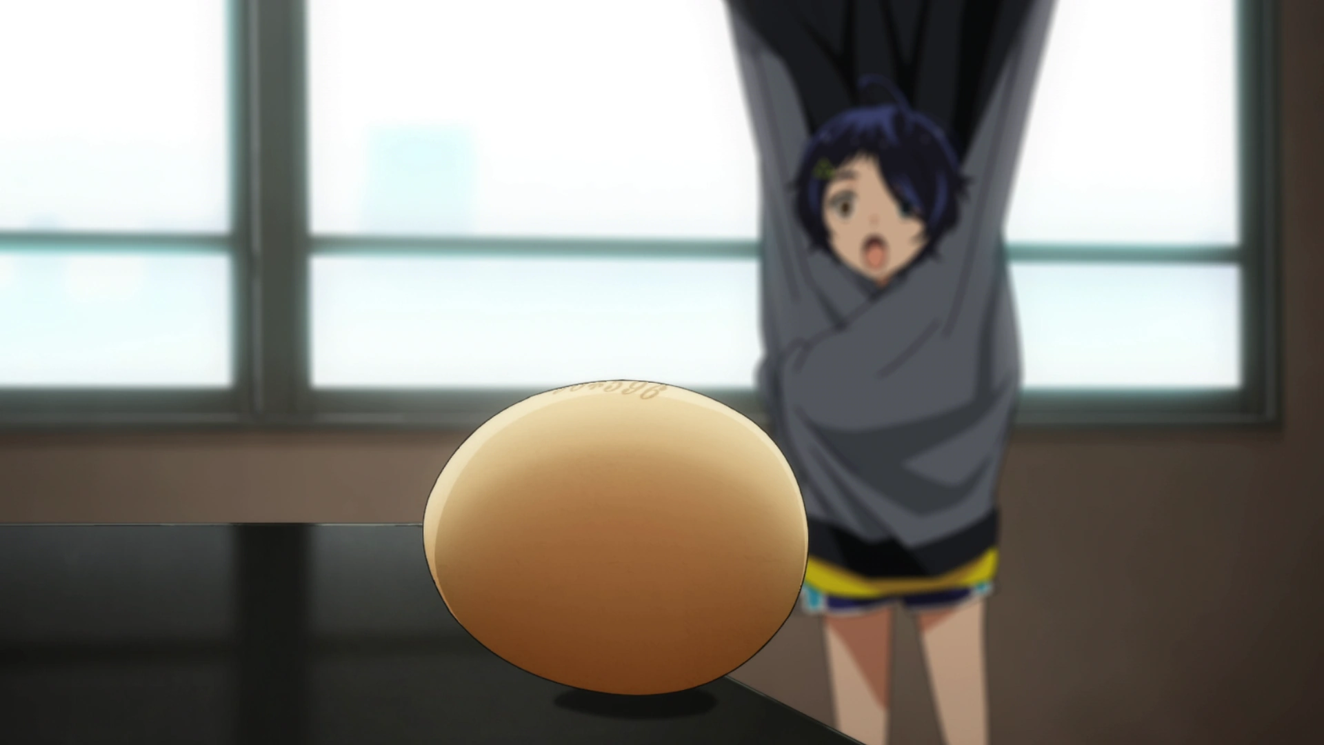 Ai is alone again in the world of eggs. A girl named Minami Suzuhara appears in the next egg, wearing a leotard.